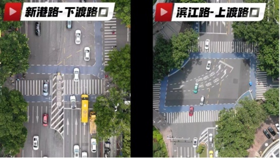 上述两个路口相距仅约700米,是连接新港西路与滨江东路两条主干道的重要节点,周边住宅密集,日常车流量大,早晚高峰期间非机动车过街秩序问题较为突出。为此,广州交警开展实地调研,采取三项措施进行系统优化。